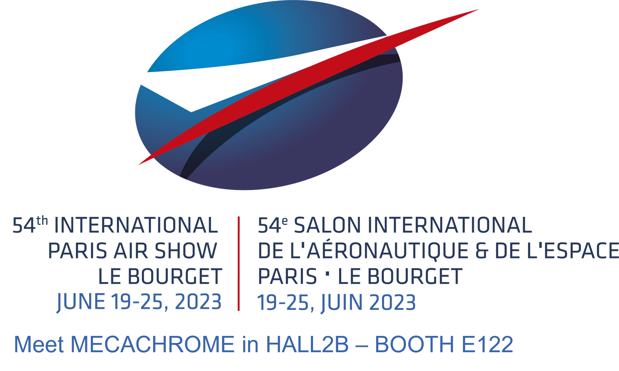 Le Groupe MECACHROME et le Groupe ROSSI AERO seront présents du 19 au 25 juin pour l’édition 2023 du salon du BOURGET. Venez à notre rencontre, Hall 2B – E122.